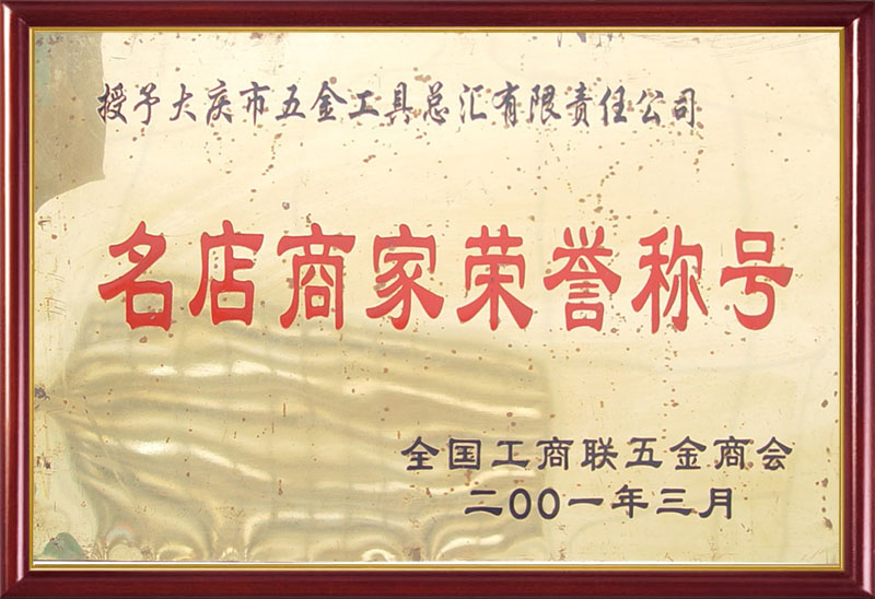 全國工商聯(lián)五金商會(huì)授予“名店商家”榮譽(yù)稱號(hào)