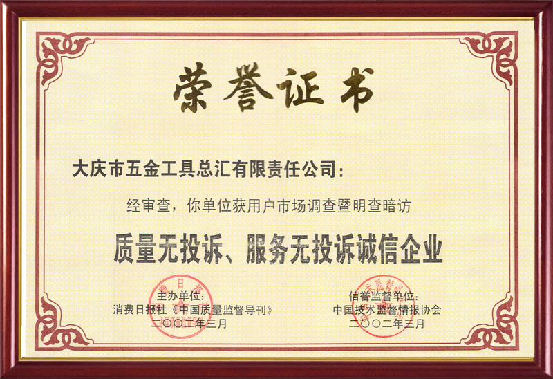 質(zhì)量無投訴、服務(wù)無投訴誠信企業(yè)