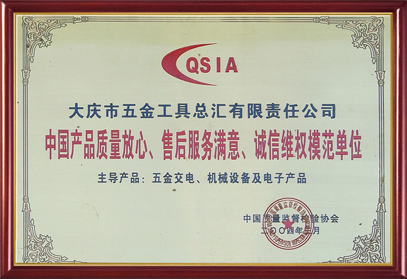 中國產(chǎn)品質(zhì)量放心、售后服務(wù)滿意、誠信維權(quán)模范單位