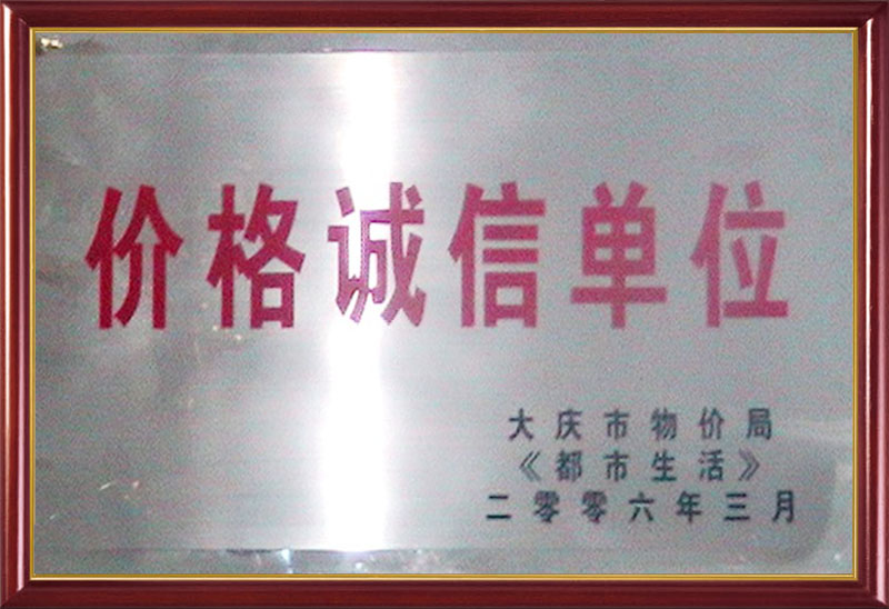 大慶市物價(jià)局授予“價(jià)格誠信單位”