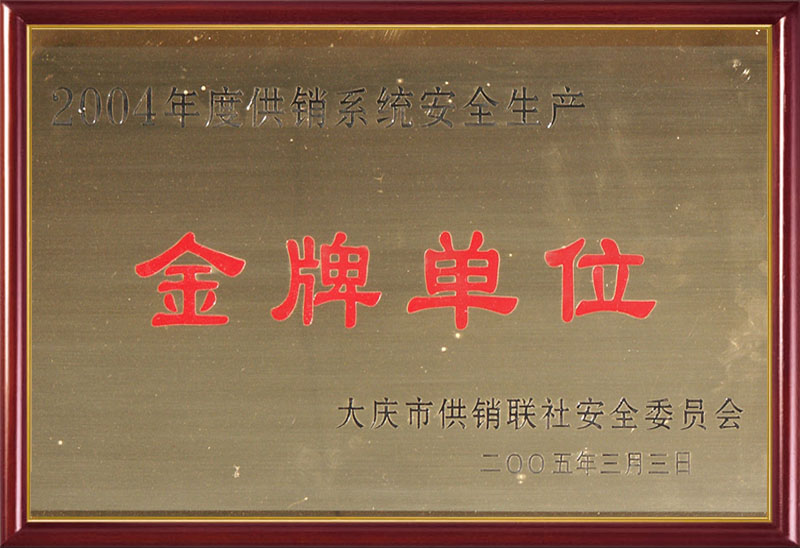大慶市供銷聯(lián)社安全委員會2004年度供銷系統(tǒng)安全生產(chǎn)工作金牌單位