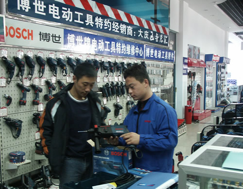 2006年11月13日德國“博世”電動工具(中國)有限公司沈陽分公司KPM專業(yè)演示隊伍到我公司進行為期五天的市場調查,并對我市電動工具經銷商做 “博世”產品的宣傳與演示。KPM是“博世”公司專業(yè)的服務部門,主要負責新產品的宣傳及推廣,產品的性能介紹與操作演示以及上門售后服務等。此次活動對 地方特約經銷商大慶五金總匯具有重要意義,一方面促進合作雙方的技術交流,同時也提高了博世電動工具在大慶地區(qū)市場的影響力。