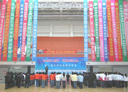 2006年12月16日, 以“校企攜手,共建和諧”為主題的大學(xué)生拓展訓(xùn)練營活動在黑龍江八一農(nóng)墾大學(xué)體育館隆重舉行。參加此次活動的有八一農(nóng)墾大學(xué)、大慶石油學(xué)院、大慶師范學(xué) 院、哈醫(yī)大大慶分校的部分優(yōu)秀學(xué)生。我公司作為愛心贊助單位鼎力支持,并派六名員工代表參加。本次活動以拓展訓(xùn)練的形式,幫助學(xué)員深刻感悟“個人與團隊, 溝通與執(zhí)行,領(lǐng)導(dǎo)與服從”的理念。通過與大學(xué)生零距離的交流互動,我們員工也深深體會到了當(dāng)代大學(xué)生的激情與活力,感受到學(xué)習(xí)知識的永無止境性。