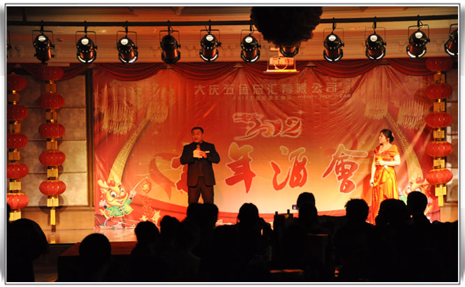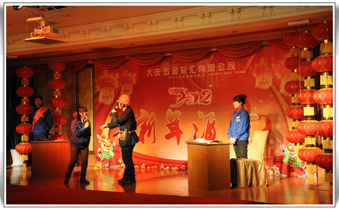 2012年1月9日,公司全體員工在大慶讓胡路區(qū)新科苑賓館迎來了大慶五金總匯——2012年新年酒會。公司員工自編自導(dǎo)自演了整場晚會,演出十分成功,歡聲笑語充滿了整個晚會。大家在歡樂祥和的氣氛中告別2011,展望2012。
