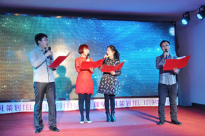 2015年1月15日,大慶五金總匯有限公司組織全體員工在大慶會戰(zhàn)飯店舉行新年酒會,員工利用業(yè)余時間精心排練一場文藝演出,歌曲、舞蹈、小品,表演高潮迭起,歡聲笑語不絕于耳。員工年度頒獎典禮,“服務(wù)雙月團體獎”由購銷業(yè)務(wù)一部銷售員劉佳、曹薇、李榮秀、趙華東、李磊、張振鵬、王艷茹、高煥瑩、趙清波獲得,“服務(wù)雙月個人獎”分別由購銷業(yè)務(wù)一部劉佳、購銷業(yè)務(wù)一部侯麗萍、購銷業(yè)務(wù)二部李冬梅獲得,而年終大獎——“愛崗敬業(yè)獎”由行政人事部李倩榮獲。榜樣的力量是無窮的,激勵著五金總匯人不斷前行。
