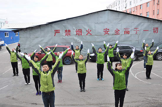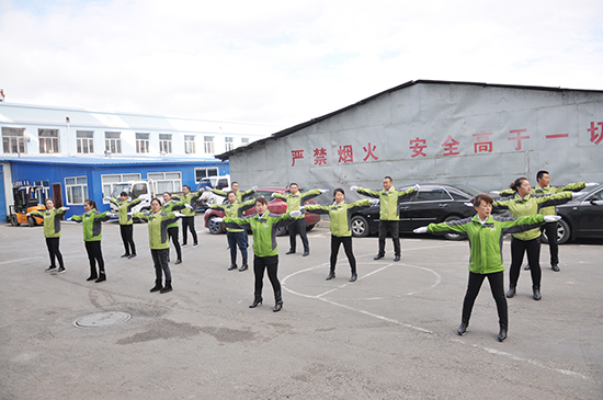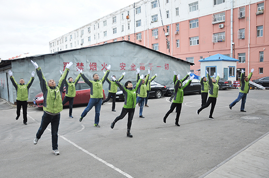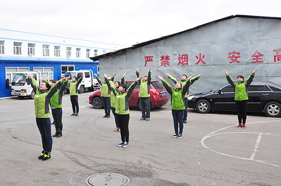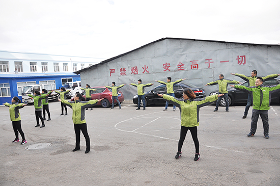 2016年10月19日中午我公司全體員工集合在后院廣場,進行第九套廣播體操比賽。