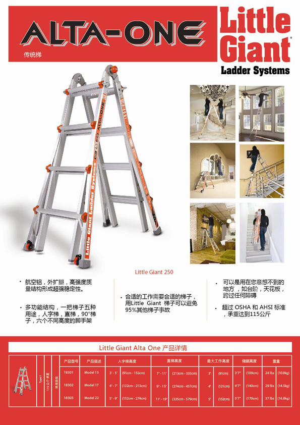 多功能結(jié)構(gòu),一把梯子五種用途,人字梯,直梯,90度梯子,六個(gè)不同高度的腳手架。