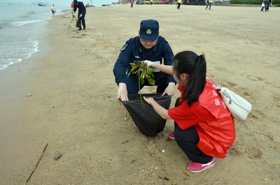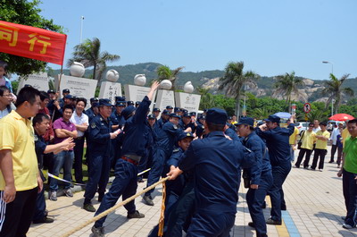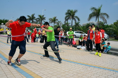 陽光明媚、海浪輕拍,大雨洗滌過的海濱分外清新。員工和官兵代表們絡(luò)繹不絕、配合默契撿拾木棧道沿途垃圾,志愿者紅色馬甲與海軍藍(lán)色制服錯落分布,構(gòu)成海灘一道獨特亮麗的風(fēng)景線。員工子女們也顧不得滿頭大汗,興沖沖地?fù)炱鸨缓K疀_上岸的雜物,用心體會著環(huán)保的理念和勞動的快樂。音樂廣場上的拔河比賽和趣味游戲?qū)F(xiàn)場氣氛推向高潮。來自集團(tuán)和海軍南方局的16支代表隊奮力拼搏,拉拉隊員激情吶喊,充分展現(xiàn)了廣大員工和現(xiàn)代軍人團(tuán)結(jié)拼搏的精神風(fēng)貌。經(jīng)過激烈角逐,象嶼碼頭、海軍南方局代表隊拔得頭籌,分獲甲、乙組冠軍。由貿(mào)易、建設(shè)、速傳、資產(chǎn)四家工會精心準(zhǔn)備的趣味游戲吸引了眾多員工及家屬參與,“龍鳳戲珠”、“呼啦行進(jìn)”、“勇闖長繩”、“向快樂出發(fā)”等環(huán)節(jié)異彩紛呈,歡呼聲、叫好聲,高潮迭起。