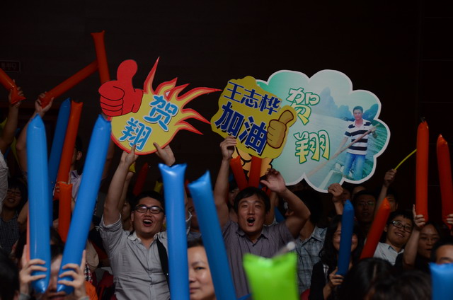 在激揚(yáng)的歌曲聯(lián)唱《五月的花海》中,歌唱比賽正式開(kāi)始。16名選手按組別輪流登場(chǎng),現(xiàn)場(chǎng)精彩萬(wàn)分。歌聲或激蕩高昂,或宛轉(zhuǎn)悠揚(yáng),或徐徐如風(fēng),或渾厚有力;表現(xiàn)力或動(dòng)感十足,或動(dòng)靜相宜,或幽靜宜人;曲風(fēng)各異,或熱辣奔放,或溫暖抒情,或自然歡快,或懷舊悠揚(yáng)。啦啦隊(duì)陣容也不容小覷,加油牌、口哨、熒光棒一應(yīng)俱全,或歌唱伊始吶喊助威,或伴隨著歌聲興奮地?fù)]舞著手臂,更有甚者激動(dòng)地走到臺(tái)上為選手喝彩,臺(tái)上臺(tái)下照相印襯、融為一體。期間,軍企拉歌、擊鼓傳花等活動(dòng)環(huán)節(jié)也將比賽推向一個(gè)又一個(gè)高潮。