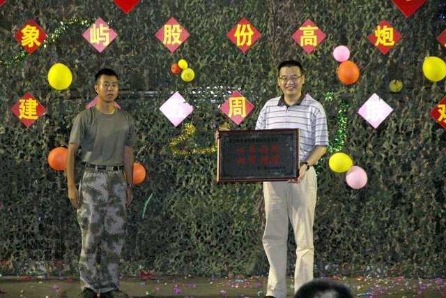 7月28日晚,象嶼股份部分高管及員工代表與高炮三連官兵相聚東坪山,舉行了雙擁共建十五周年暨“慶八一·軍民魚水情”聯歡晚會。