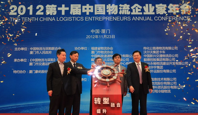 借著舉國上下貫徹落實(shí)十八大精神的東風(fēng),11月23日,2012第十屆中國物流企業(yè)家年會(huì)在廈門隆重舉行。本屆年會(huì)由中國物流與采購聯(lián)合會(huì)及廈門市人民政府主辦、《中國物流與采購》雜志社及廈門市交通運(yùn)輸局承辦、象嶼股份特約協(xié)辦,以“轉(zhuǎn)型、融合、提升、共贏”為主題,為物流界精英們量身打造了一個(gè)暢所欲言、創(chuàng)新思維的平臺(tái),來自國內(nèi)知名物流企業(yè)、政府部門及相關(guān)協(xié)會(huì)和研究機(jī)構(gòu)的上千名物流大腕精英參加了此次會(huì)議。