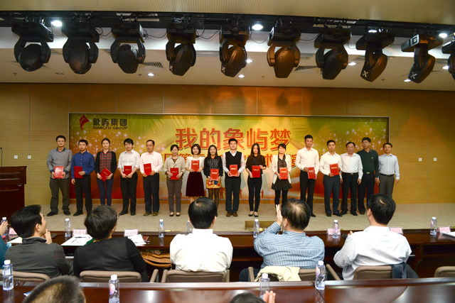 集團公司王龍雛董事長、邵蕰默副書記、陳偉彬原副書記、象嶼保稅區(qū)管委會薛志宏處長、集團公司劉信平副總裁、林志勇總裁助理等為征文、攝影、演講比賽獲獎人員頒獎。