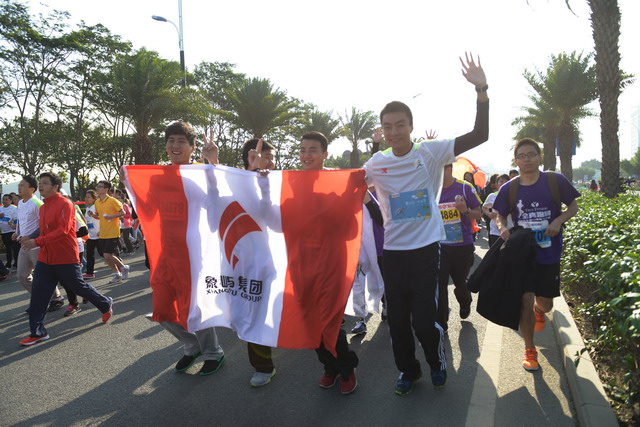 12月13日,90多名象嶼長(zhǎng)跑愛好者早早地從廈門各個(gè)角落聚集到海滄大道,參加2015年廈門國(guó)際馬拉松賽5公里、10公里健康跑。