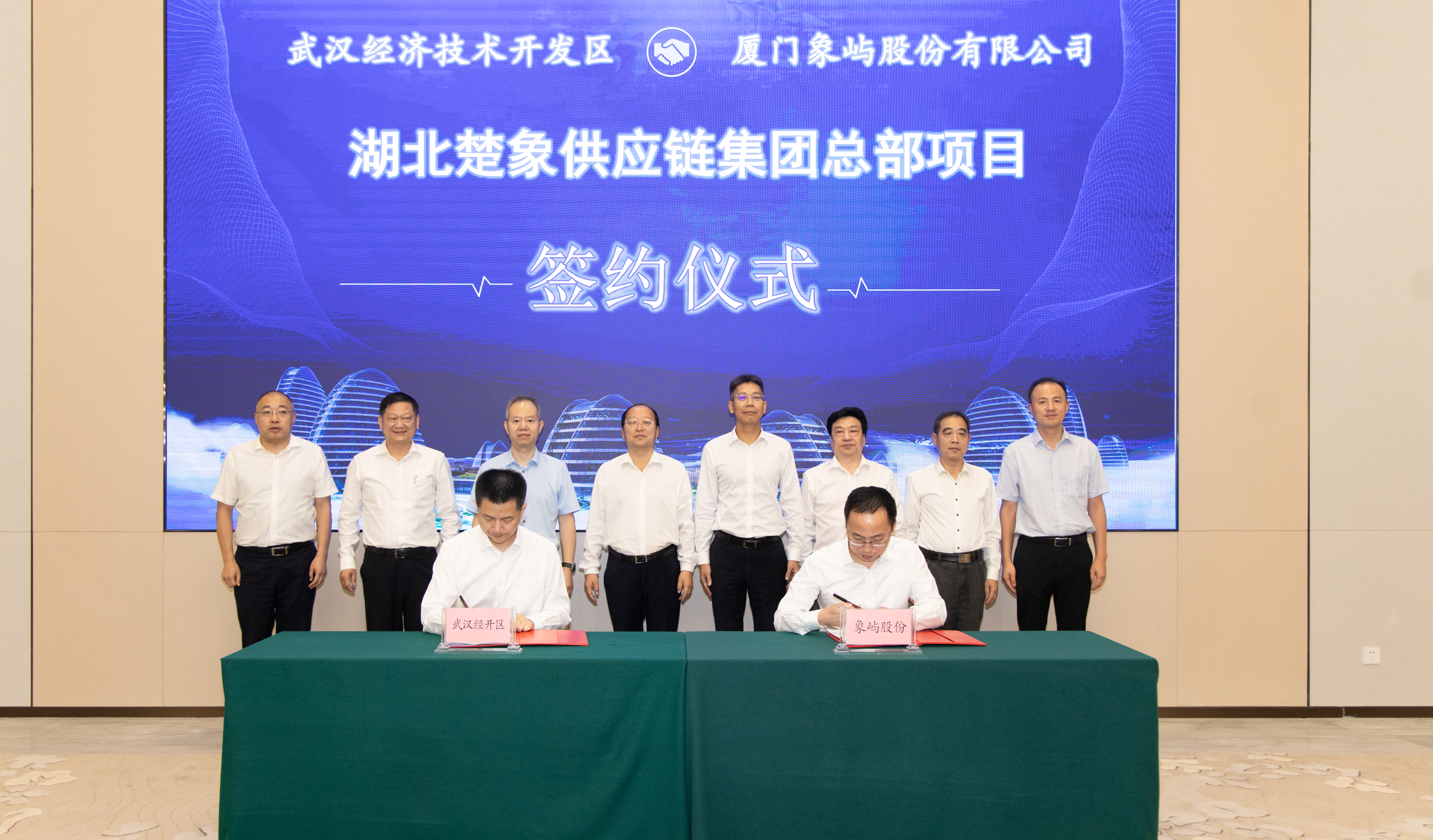 9月28日下午,廈門象嶼股份有限公司與武漢經(jīng)濟(jì)技術(shù)開發(fā)區(qū)簽署項目合作協(xié)議,湖北楚象供應(yīng)鏈集團(tuán)總部項目正式落戶武漢經(jīng)開區(qū)。在象嶼股份黨委書記、總經(jīng)理齊衛(wèi)東,市委常委、武漢經(jīng)開區(qū)工委書記劉子清,湖北交通投資集團(tuán)有限公司黨委書記、董事長龍傳華,黨委副書記、總經(jīng)理盧軍等共同見證下,象嶼股份黨委委員、副總經(jīng)理范承揚與武漢經(jīng)開區(qū)工委副書記、管委會主任唐超分別代表雙方簽約。