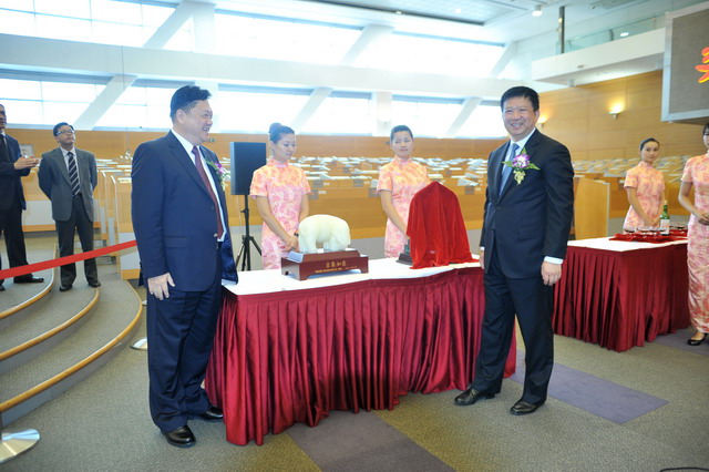 王龍雛董事長與上交所周勤業(yè)副總經(jīng)理交換上市紀(jì)念禮品